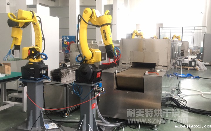 疫苗玻璃瓶特殊涂层工艺,预热+固化自动化对接隧道炉烘烤线 1、设备名称:硅化西林瓶生产线; 2、本生产线分为机械手移载产品至菱形线、取样与安全防护门、菱形输送线、预热炉、产品出炉温控监测及位置检测、喷硅系统、视觉检测系统、流量监测系统、NG排除机构、机械手移载至网带输送线、取样与安全防护门、网带输送线、固化炉、机械手移载至包装线、取样与安全防护门;系统分为两种生产模,硅化线和非硅化。