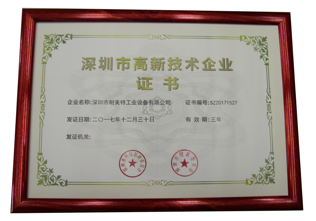 2018年伊始,深圳ag九游会登录j9入口旧版工业设备有限公司喜迎佳音——根据国家《高新技术企业认定管理办法》和《高新技术企业认定管理工作指引》的相关规定,ag九游会登录j9入口旧版工业设备被认定为国家级高新技术企业。近日,公司也已收到了由深圳市科技创新委员会、深圳市财政委员会、深圳市国家税务局、深圳市地方税务局联合颁发的“国家高新技术企业”认定证书,由此正式迈入国家高新技术企业行列。
