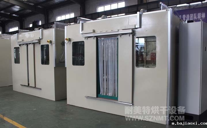 1,物流人员在加热箱后面把料车推到加热房里,关上卷帘门开始加热。