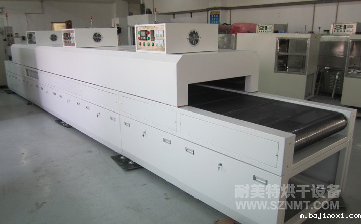 烘干炉部分外形尺寸:长8米,外宽1.17米,网带宽0.85米,总高1.27米,出料部分长1.0米,烘干部分长6米,进料部分长1.0米;